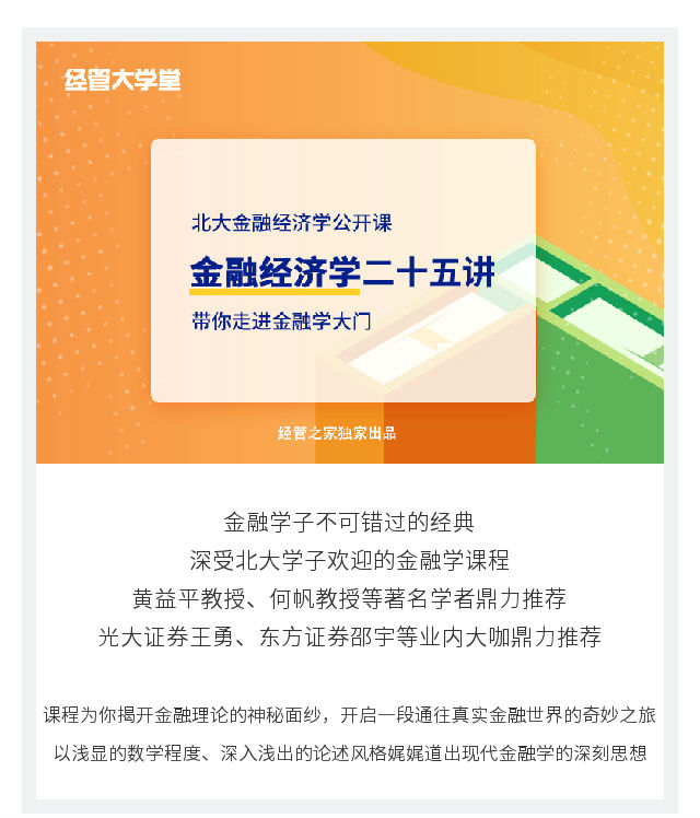 微信关注“经管大学堂”服务号,回复“金融经济学”即可获取本课程完整课件。
